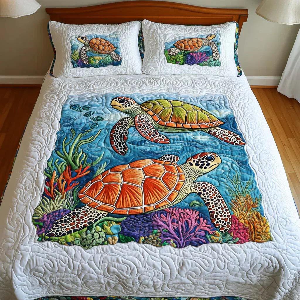 3dílná sada prošívaného povlečení - Mořské želvy