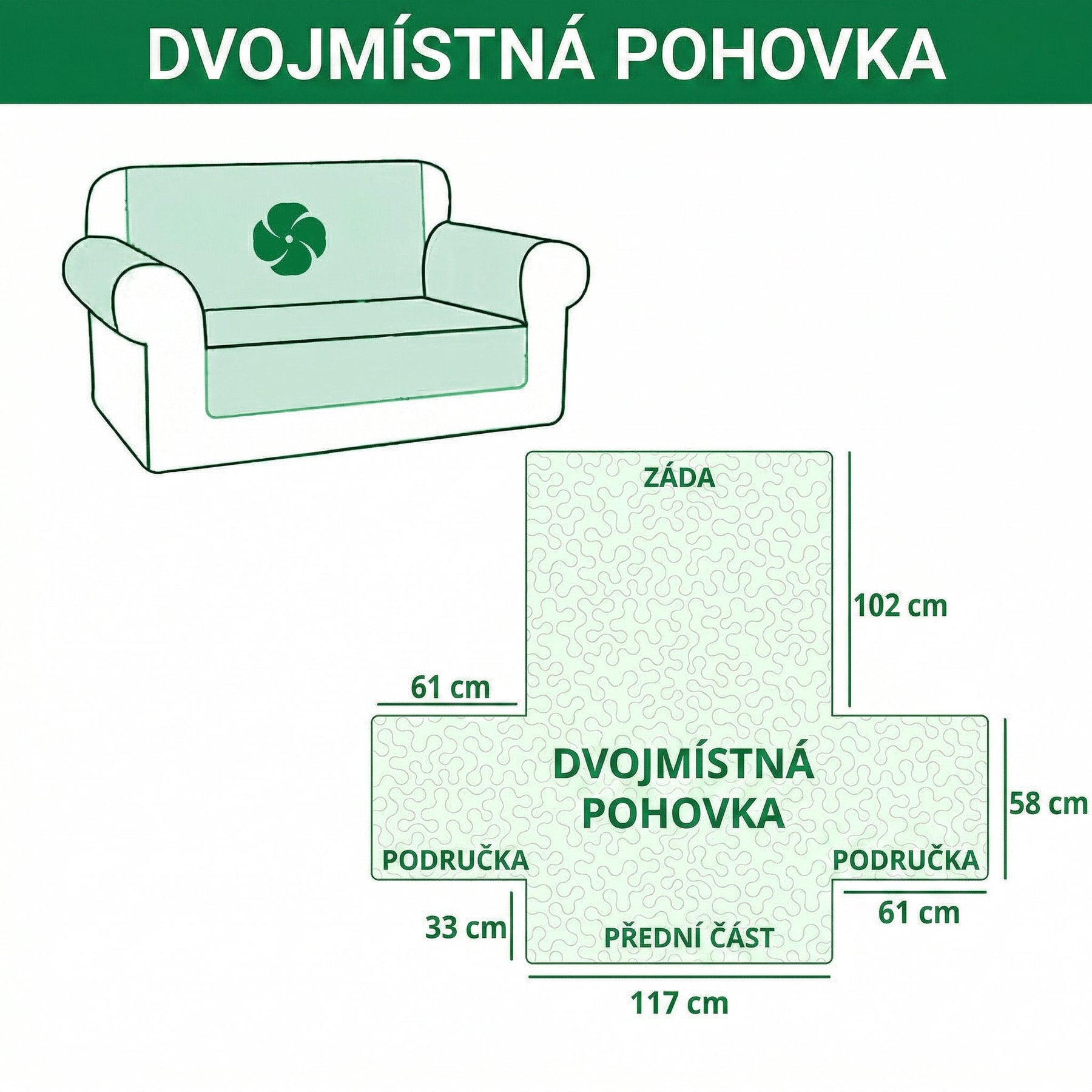 • Dvojmístná pohovka: 239 x 193 cm