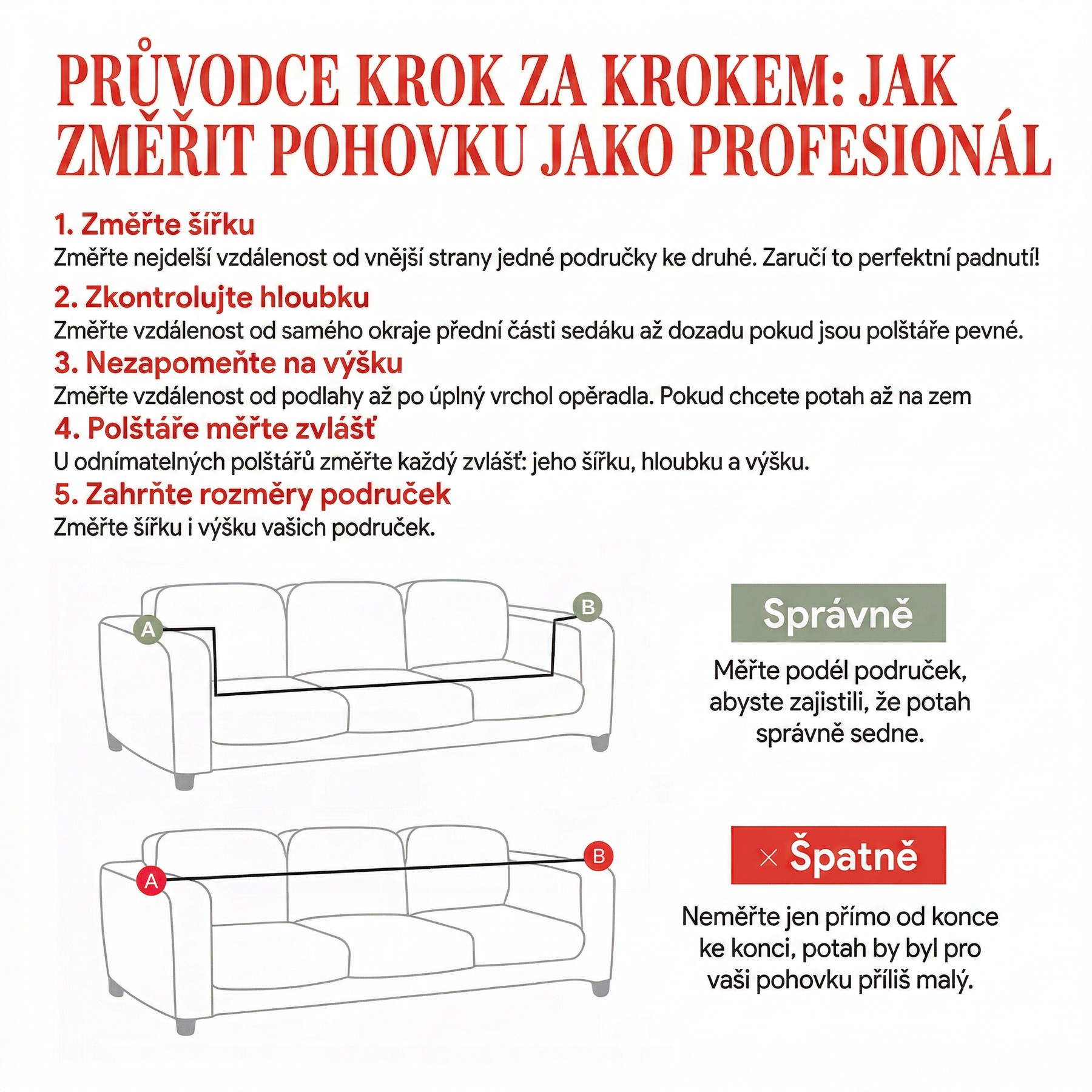 Pro nejlepší přizpůsobení prosím změřte svou pohovku a prostudujte naši tabulku velikostí. Reklamní obrázky nemusí přesně odpovídat vybrané velikosti, protože zobrazená pohovka může být jiné velikosti než vaše.