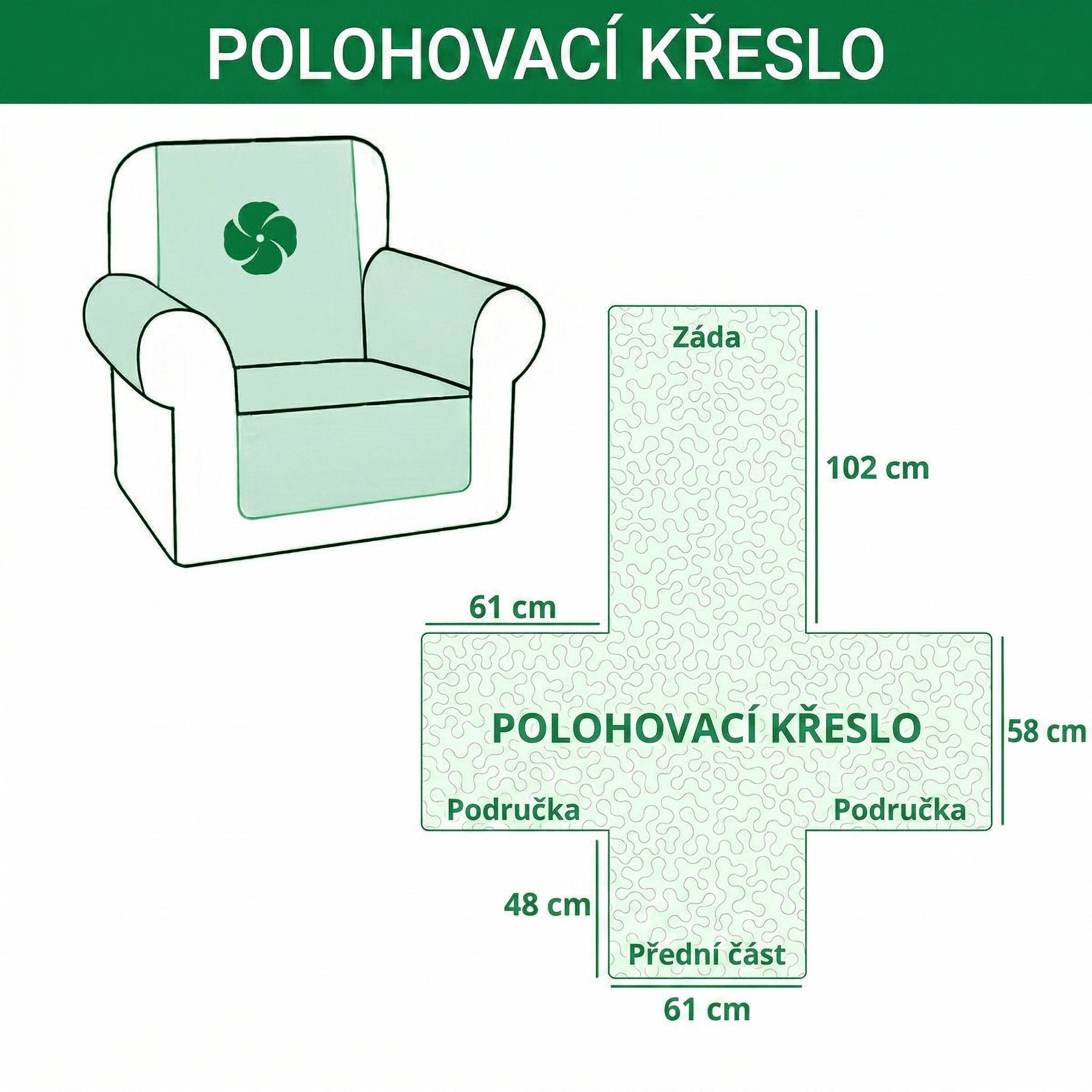 • Polohovací křeslo: 208 x 183 cm