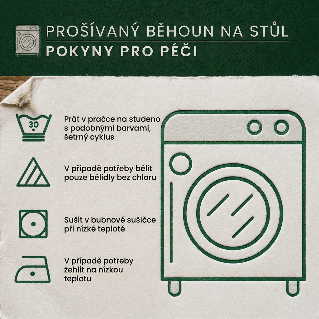Snadná Údržba: Život je už tak složitý! Proto je náš ubrus prátelný v pračce a vhodný pro sušení v bubnu, což zjednodušuje vaši úklidovou rutinu.